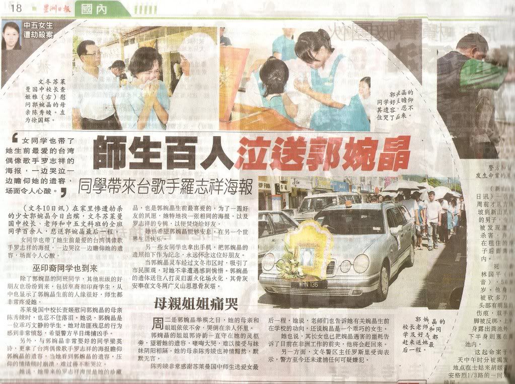【2009/03/07 星洲日報】同學帶來台歌手羅志祥海報 師生百人為郭婉晶送殯