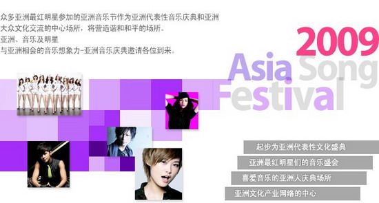 新浪娱乐讯 2009年9月19日(周六)晚,韩国首尔世界杯体育场将上演一场属于亚洲人自己的音乐盛会,届时韩国当红组合Super Junior、BigBang、少女时代、2NE1,中国的李宇春、罗志祥、郑伊健,日本的V6、GACKT等将纷纷亮相。参加活动,有可能赢得该演出的入场券及感受特别韩国行。