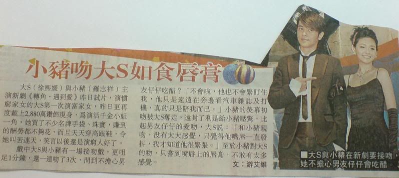 【2007/01/07 香港星島日報】 小豬吻大S如食唇膏